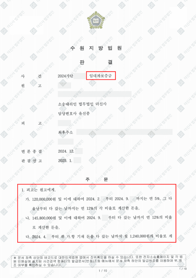🔹 전세보증금 배액배상 및 손해배상금 청구 승소