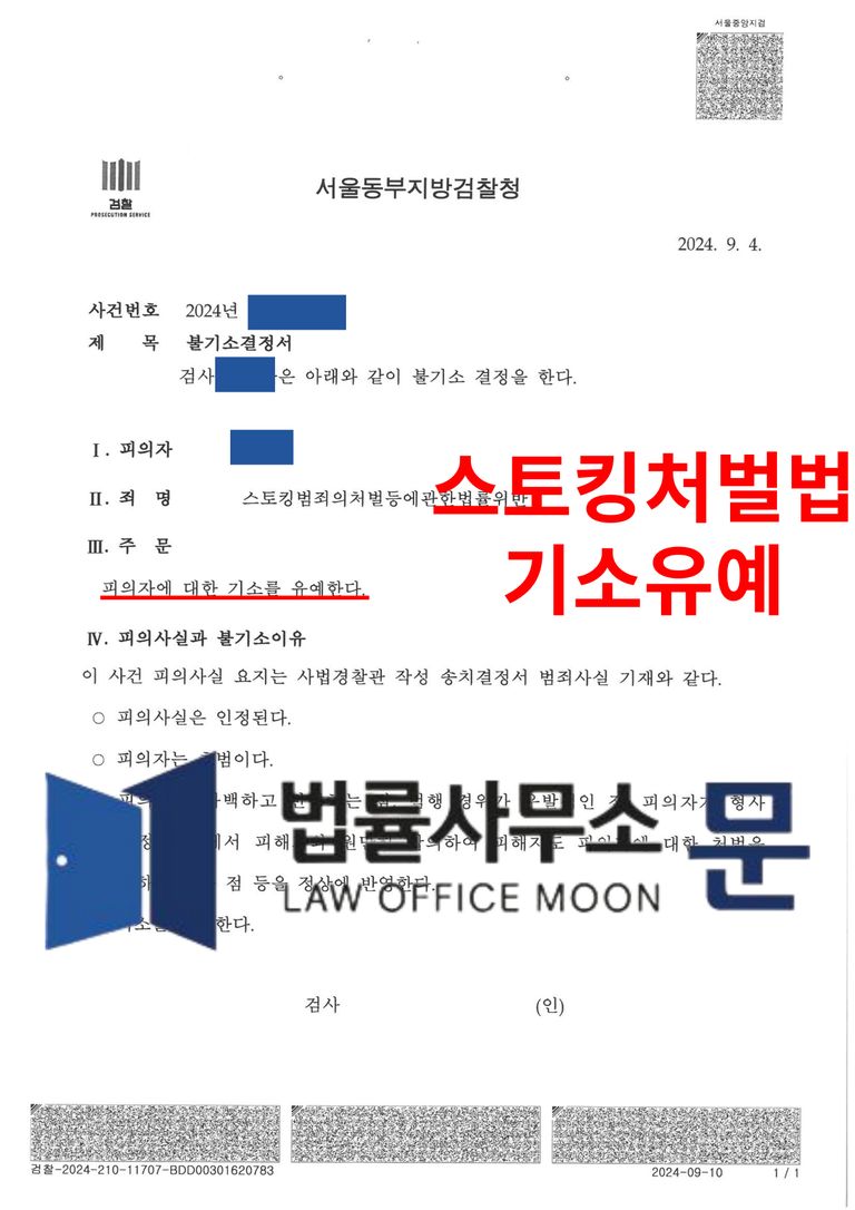 20대 남성 의뢰인의 전 연인에 대한 스토킹범죄에 대하여 기소유예를 받은 사안