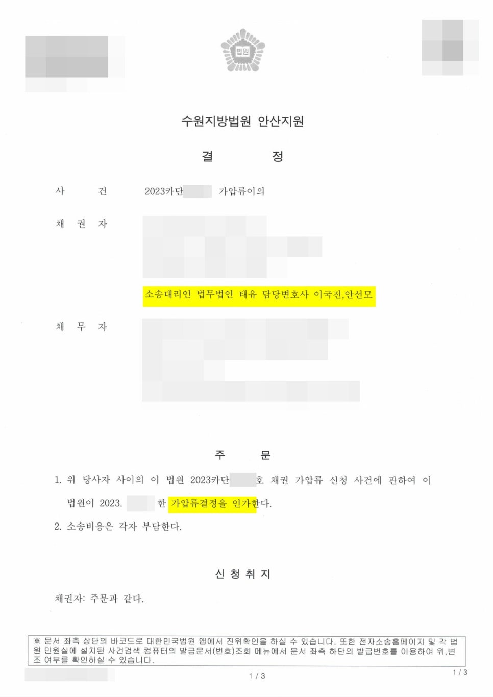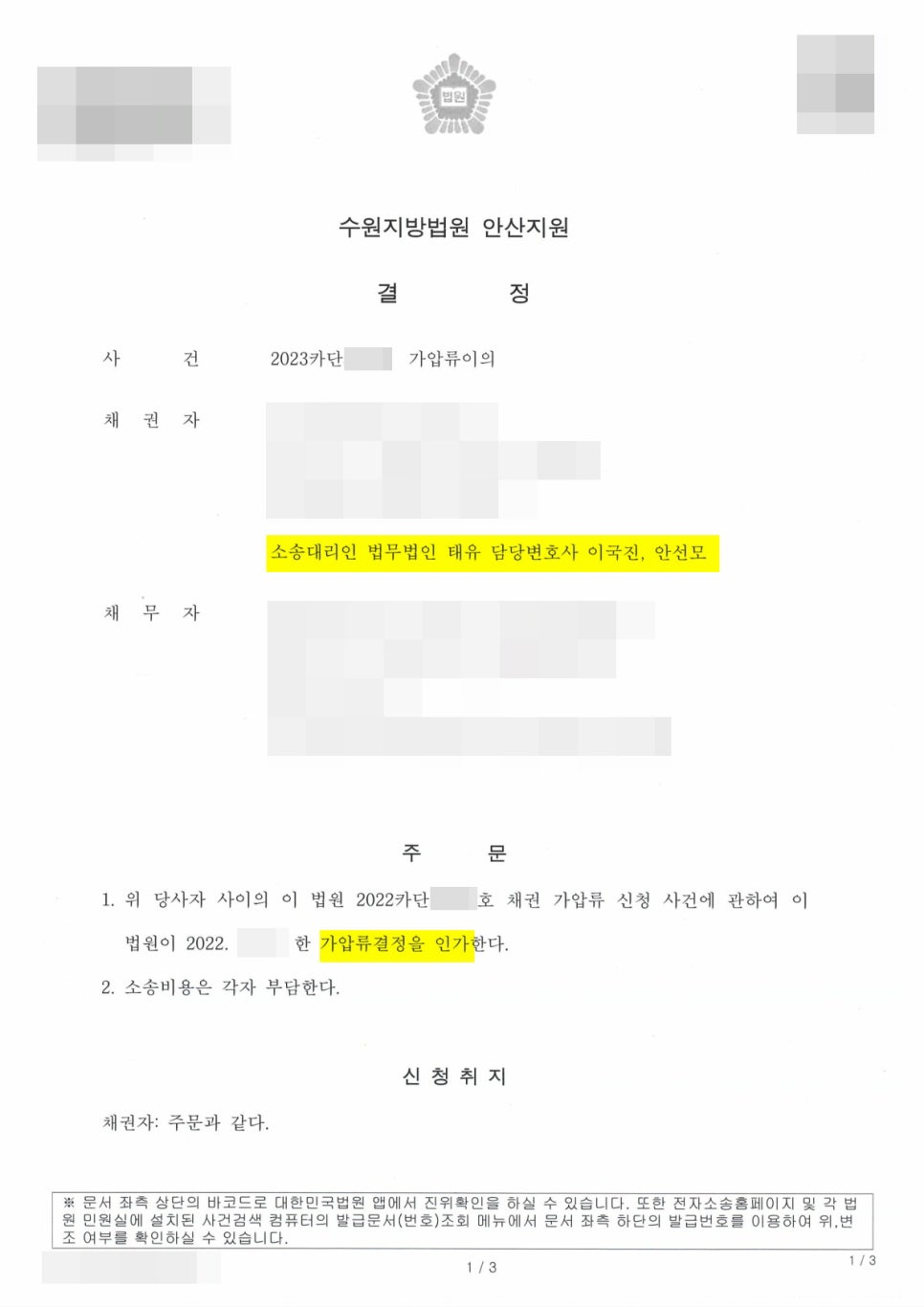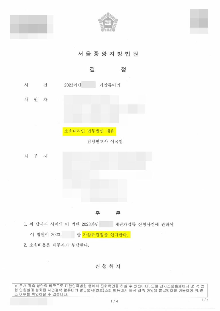 비슷한 사례로 고민하고 계시거나, 혹은 가압류 이의신청을 하셔야 하는 경우 언제든지 연락주십시오.