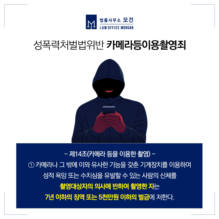 오늘 소개해드린 의뢰인의 사례처럼 탈의실 등에 직접적으로 촬영기기를 설치하여 타인의 은밀한 모습을 촬영하는 행위를 명백한 계획범죄라 보기 때문에 더욱 죄질이 나쁘다고 보는데요.