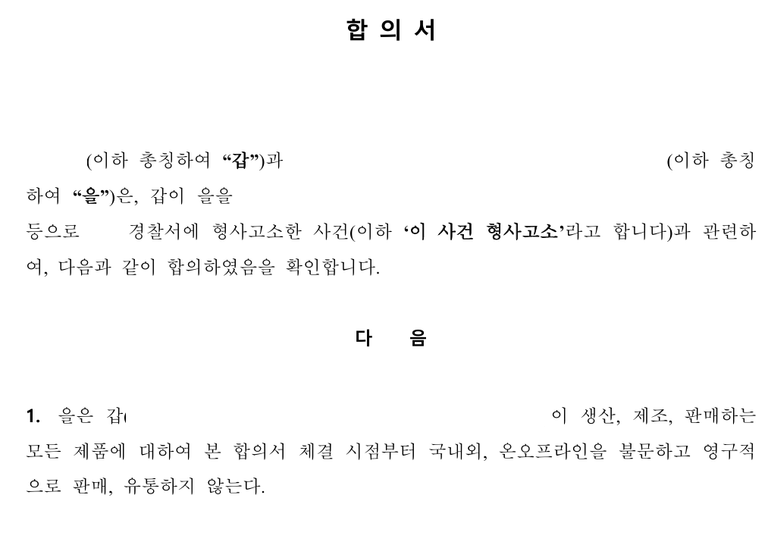 실제 체결된 합의서의 일부