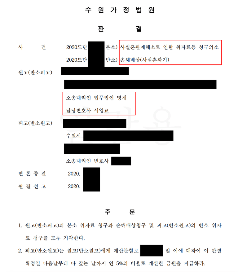 의뢰인의 사실혼관계 해소로 인한 위자료 청구에 사실혼 남편이 반소합니다.