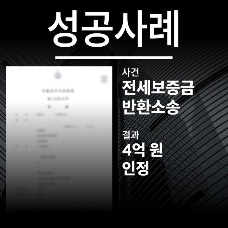 그 결과 법원에서는 본 변호사의 주장을 모두 받아들였고, A씨에게 4억원의 전세보증금을 모두 반환하라고 판결하며, 다행히도 의뢰인께서는 좋은 결과로 사안을 마무리 지을 수 있었습니다.