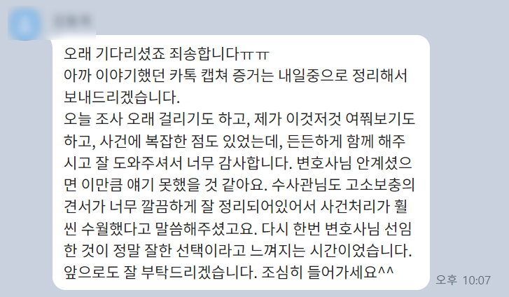 저희를 찾아주신 의뢰인분들의 감사 카톡 후기입니다. : )