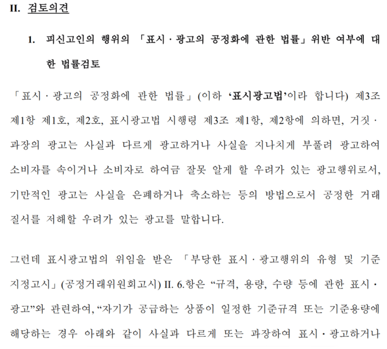 하지만 표시광고법 위반 법률 또한 간단하지는 않습니다.
