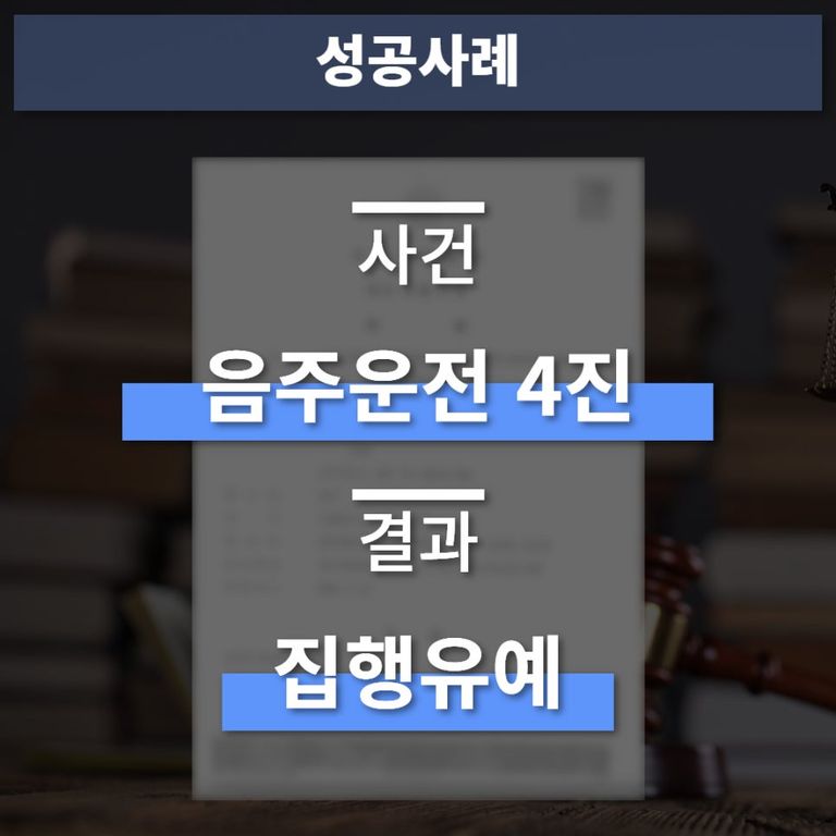 그 결과 법원에서는 의뢰인이 연루된 음주운전 4진 혐의에 대해 또다시 ‘집행유예’를 선고하였으며, 다행히도 의뢰인께서는 평범했던 자신의 일상으로 돌아가 생활할 수 있게 되었습니다.