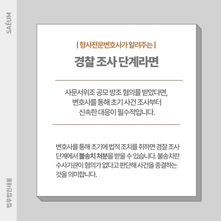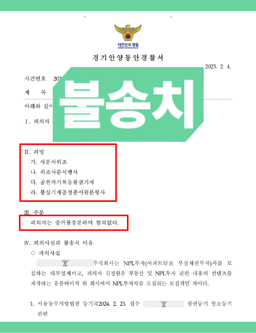 사문서위조 공모 방조 혐의, 불송치 받은 실제 사례