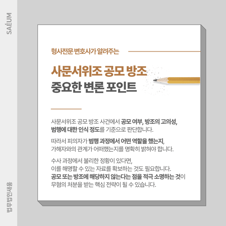사문서위조 공모 방조 사건에서 중요한 변론 포인트
