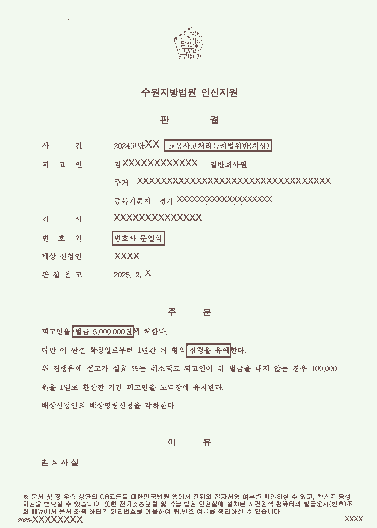 이 사건은 문일식 변호사의 적극적인 양형변론으로 의뢰인의 입장에서 최고의 선처로 볼 수 있는 벌금형의 집행유예를 받아낸 사례로서, 전문적인 변호사의 조력은 사건의 결과에 큰 영향을 미칠 수 있다는 것을 보여준 사건이었습니다.