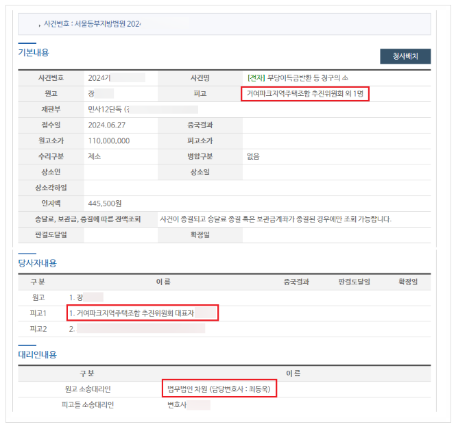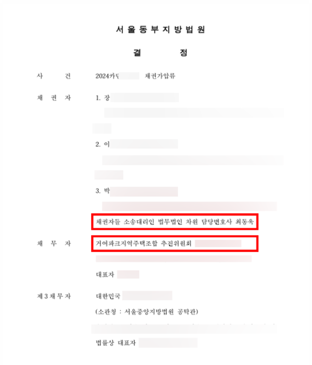 거여파크 지역주택조합을 상대로 한 납입금반환 소송 및 법원 가압류결정