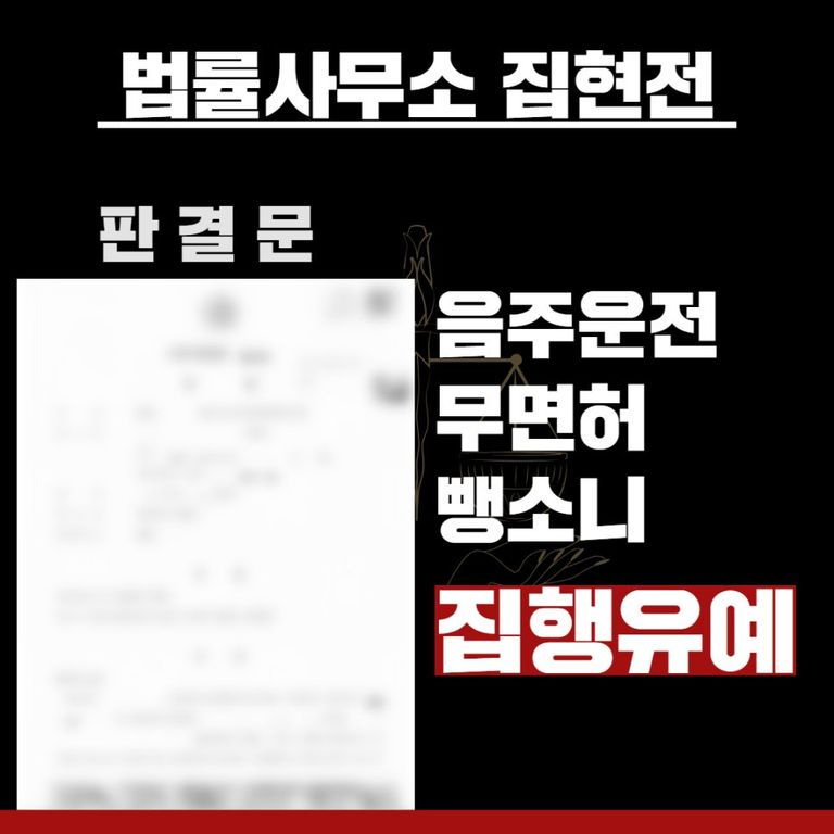 그 결과 법원에서는 본 변호인의 주장을 모두 받아들였고, 무면허운전, 음주운전, 뺑소니 총 3가지 범죄에 연루된 의뢰인에게 실형이 아닌 ‘집행유예’를 선고하며, 다행히도 좋은 결과로 마무리 지을 수 있게 되었습니다.