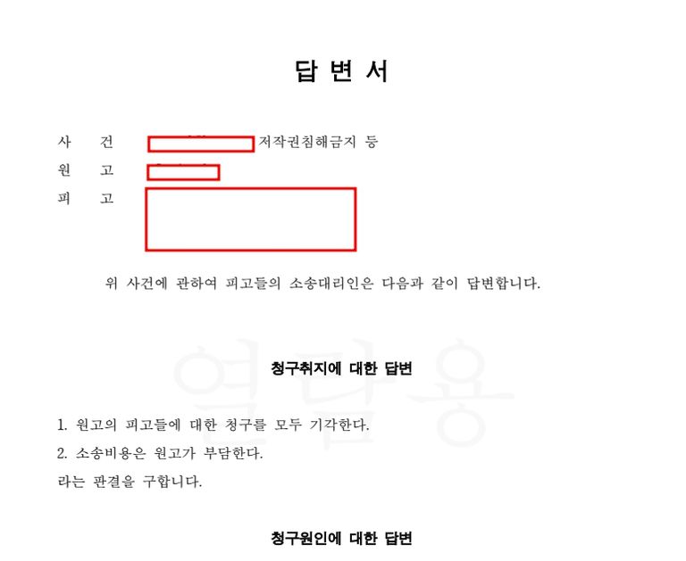 [ 태연법률사무소에서 작성한 답변서, 저작권 침해 대응 사례, 저작권 전문 변호사 ]