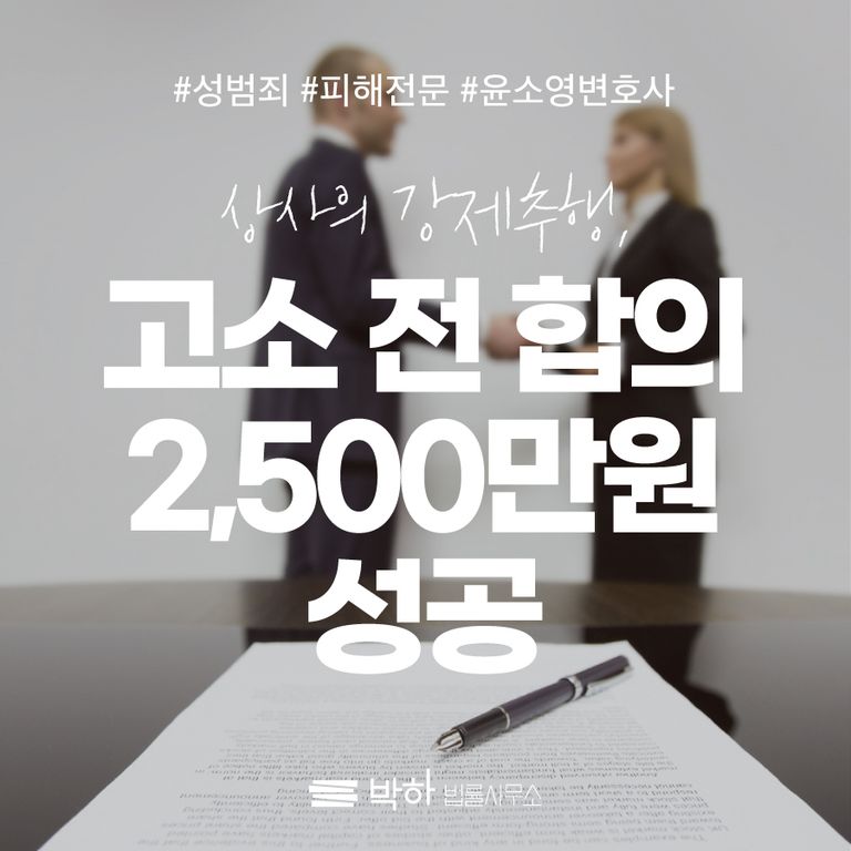 윤소영 변호사의 빠른 대응과 노련한 협상 능력으로 합의금 2,500만원의 합의를 빠르게 종결할 수 있었습니다.