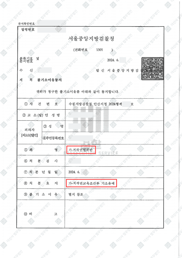 저작권법 위반 기소유예 사례