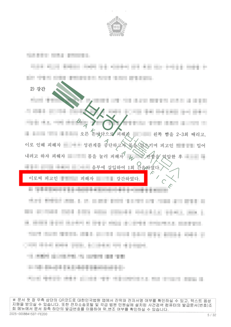 ③ 폭행 이후 피해자는 가해자로부터 더 큰 위협이 가해질까 두려워 더 강하게 저항할 수 없었다는 점을 근거로 가해자가 피해자의 뺨을 때린 행위는 피해자로 하여금 충분히 항거를 불가능하게 하거나 현저히 곤란하게 할 정도의 폭행임을 주장하며 강간죄가 충분히 성립됨을 강력히 피력하였습니다.