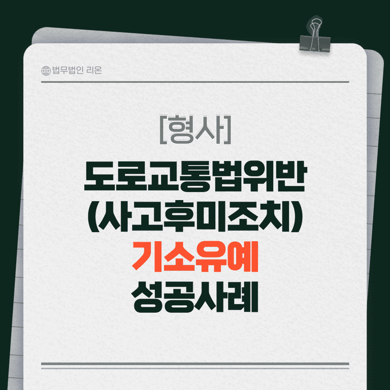의뢰인분은 도로교통법 위반(사고후미조치)으로 입건되었고 검찰 송치 후 처벌될 가능성이 높았기에, 이러한 상황을 해결하기 위해 법무법인 리온을 찾아주셨습니다.