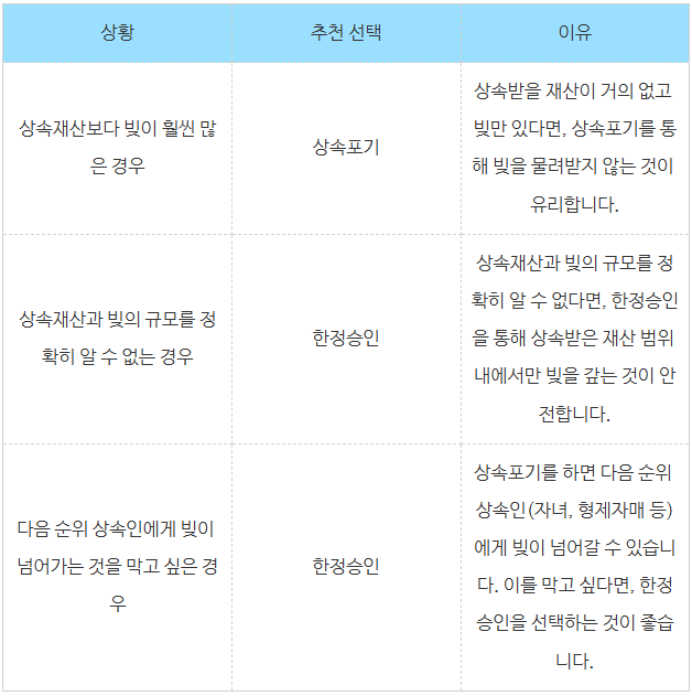 ▷ 나머지 상속인(자녀 또는 배우자) 상속포기: 상속으로 인한 채무 부담에서 완전히 벗어날 수 있습니다.