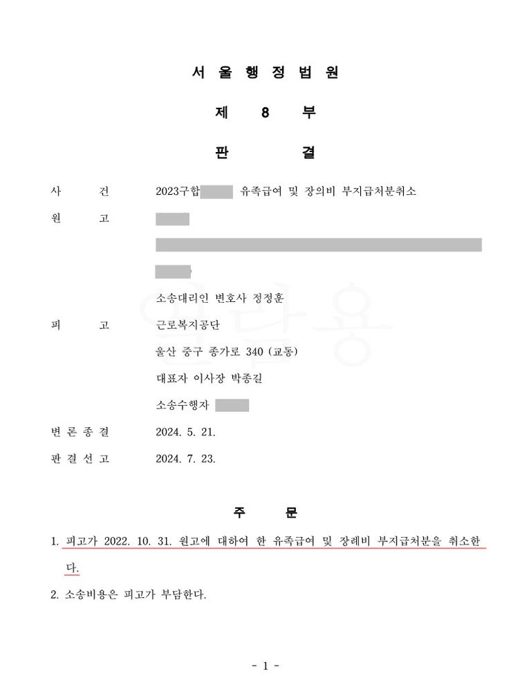 법률사무소 지담에서 진행한 유족급여 및 장의비 부지급처분취소 사건 승소 사례를 소개합니다.