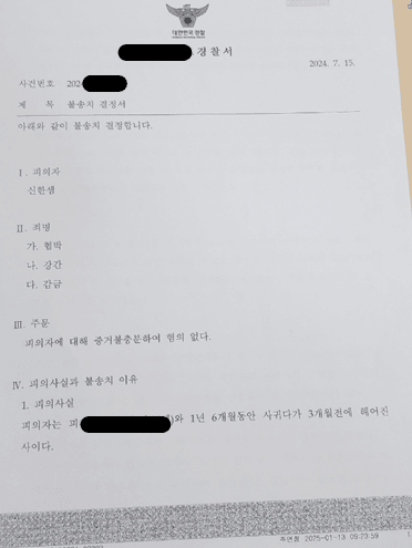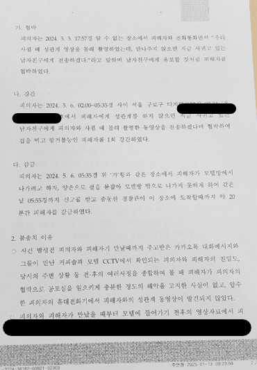 사건을 검토해 본 결과 범행 동기, 당시의 정황, 전 후 사정, 고소인과 의뢰인이 주고 받았던 메시지 등이 모두 의뢰인의 진술과 일치하였고 강하게 무죄를 주장하여 협박, 강간, 감금 모두 불송치결정을 이끌어 낼 수 있었습니다.