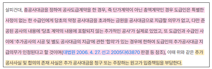 그렇다면 추가 공사대금 합의가 있었다고 하려면, 누가 입증해야 할까요? 오늘은 추가 공사대금 합의의 입증책임 문제를 알아봅니다.