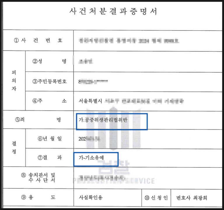 저는 공중위생관리법 위반을 인정하고 선처를 구하는 쪽으로 가는 편이 의뢰인에게 유리할 것으로 판단하였습니다. 그리하여 의뢰인이 비록 경제적으로 어려웠던 어머니를 돕기 위한 행동이었지만 법에 대해 무지로 인하여 이 사건 범행을 저지르게 된 점을 인정하면서 깊이 반성하고 있고, 범행이 적발되자마자 폐업조치를 하여 더 이상 미신고 숙박업을 운영할 여지가 없는 점, 그리고 모친이 의뢰인으로 하여금 이 사건 범행에 가담하게 된 것에 대해 미안해하며 선처를 탄원하고 있는 점 등을 기재한 의견서를 검사에게 제출하였습니다.