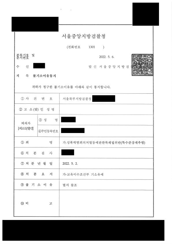 검사는 변호인의 주장 및 의뢰인들의 사정을 고려하여 선처해주었고, 성범죄 방지 교육을 받는 조건으로 기소유예처분을 하였습니다.