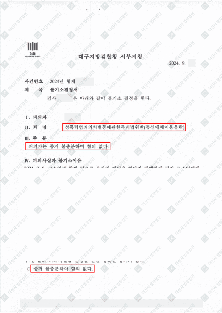 의뢰인은 SNS를 통해 지인과 대화를 나누는 과정에서 장난스럽게 성적인 농담과 이미지 몇 장을 전송했습니다. 이후 지인이 불쾌감을 느껴 경찰에 고소했고, 검찰은 통매음 혐의로 기소를 검토했습니다. 그러나 다음과 같은 정황이 인정되어 결국 무혐의 처분을 받았습니다.