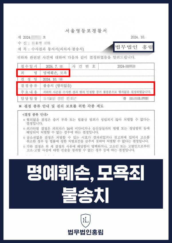 그 결과 경찰은 변호인의 주장을 받아들여 '불송치(혐의없음)' 결정하였습니다.