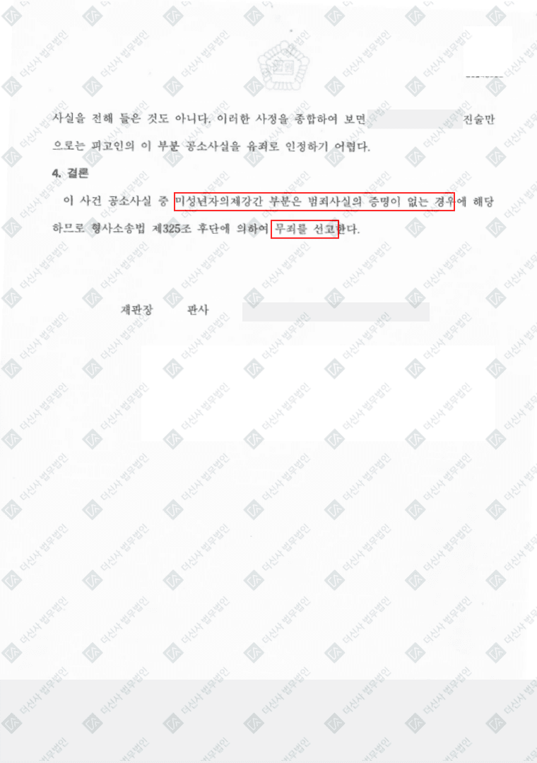 미성년자의제강간 무죄 성공사례