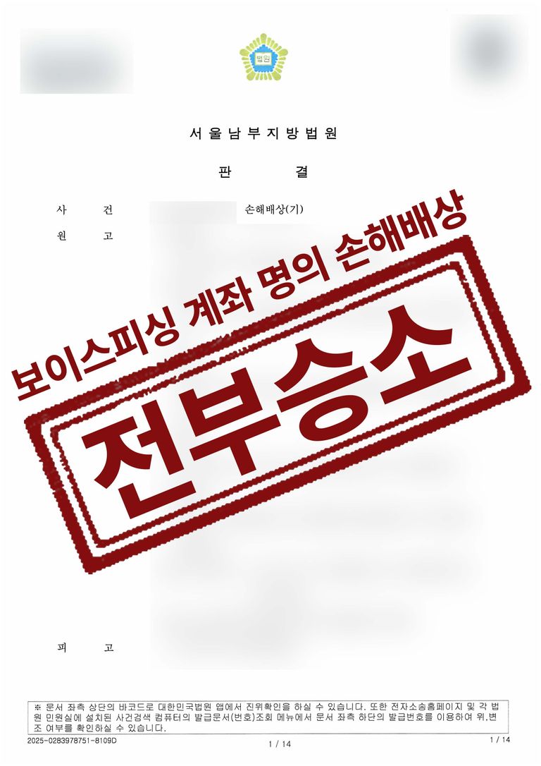 의뢰인은 불법보이스피싱 사기에 본인 명의 계좌가 사용되었고, 이에 따라 전자금융거래법위반의 처벌을 받았습니다. 하지만 피해자들의 손해배상청구소송으로 다시 민사소송으로 다투게 되었습니다.