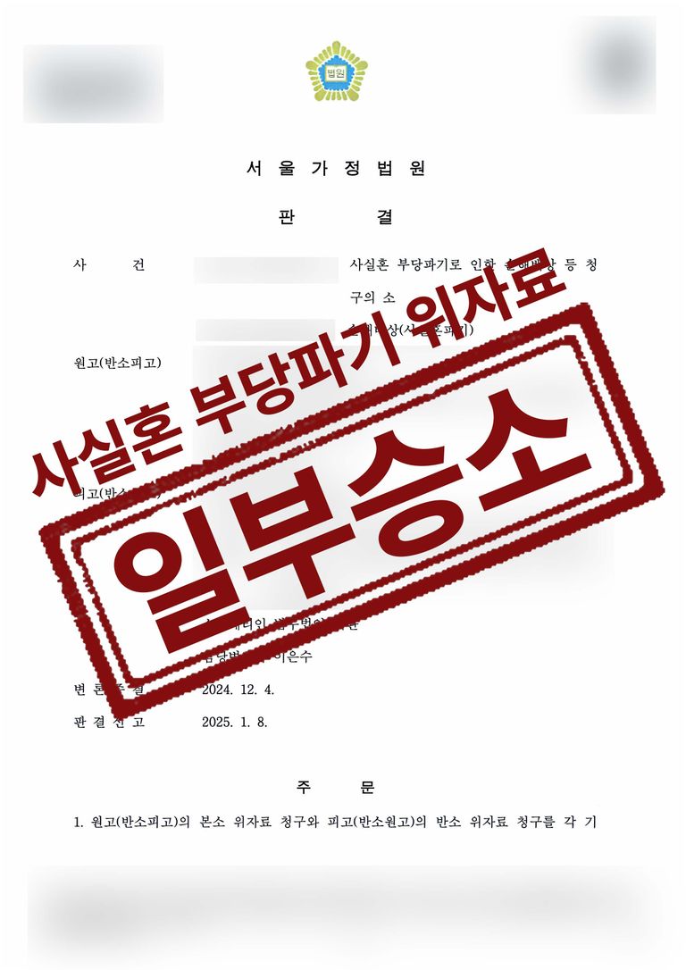 이에 법무법인 대환은 상대방의 3,000만 원의 위자료 주장에 대해 논리적으로 반박하였고, 이에 대해 1,500만 원으로 일부승소하였습니다.