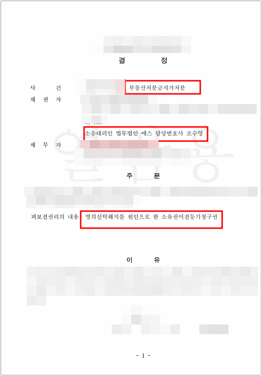 법원에서도 사안의 급작성을 인지하고 저희가 가처분 신청을 한 뒤 빠른 시일안에 처분금지가처분 결정을 내려주었습니다.
