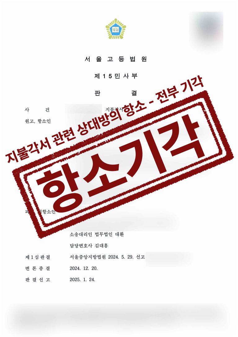 이에 상대방의 정기급 지급에 관한 모든 주장은 받아들이지 않아 항소기각되어 의뢰인이 승소하였습니다.