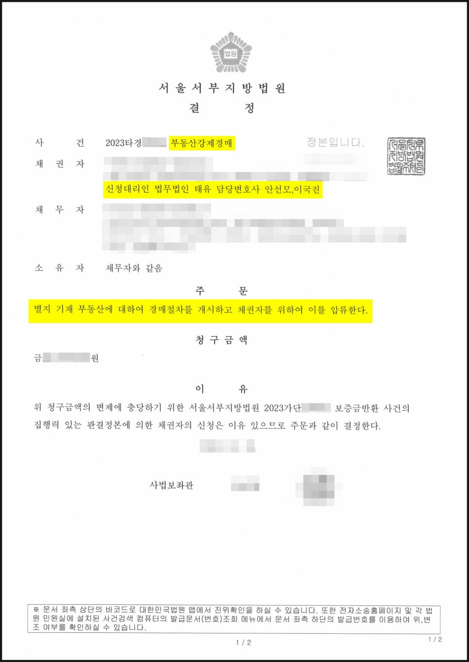 임대차보증금 문제로 고민하고 계시거나 부동산강제경매 절차를 고민하고 계시다면 언제든지 연락주십시오.