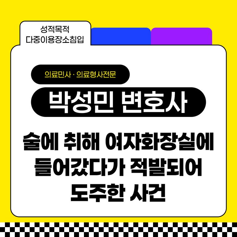 의뢰인은 남성으로 술에 취해 여자화장실에 들어갔고 상대여성이 용변칸에 들어간 사람이 남성이라는 것을 알고 의뢰인을 신고하려 하자 도주한 혐의로 조사를 받게 되었습니다.