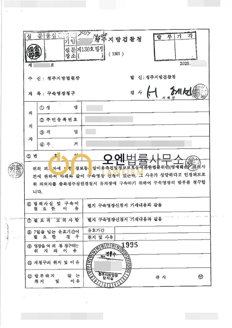 의뢰인은 불륜관계였던 상대방에 대하여 인터넷 게시판에 명예를 훼손하는 글을 게시하였다는 등의 혐의, 상대방을 협박하였다는 혐의 이외에 무고혐의까지 인지되어 경찰조사를 받았고, 수사기관은 의뢰인이 외국으로 도주할 사정 등이 있다고 하여 구속영장을 청구하였습니다.