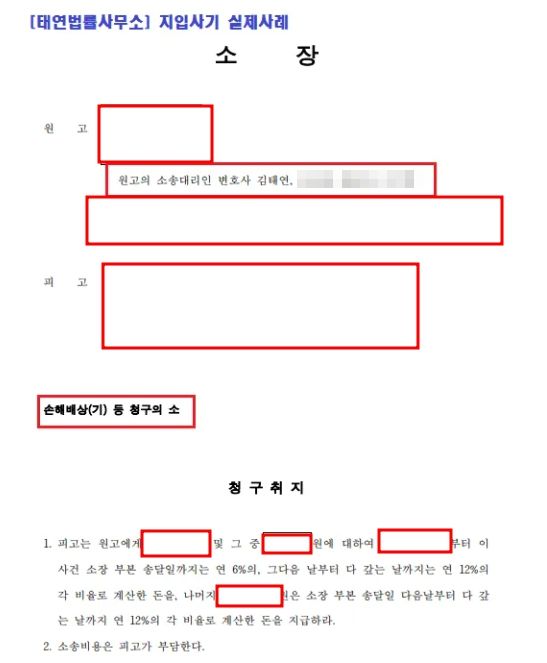 [ 태연법률사무소에서 진행한 지입차 사기 사건 손해배상 소장, 실제 사례 ]