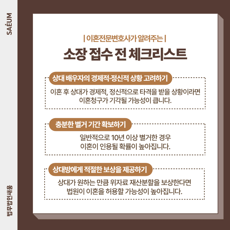 이혼 소장을 접수하기 전, 다음 사항들을 반드시 고려해야 합니다.