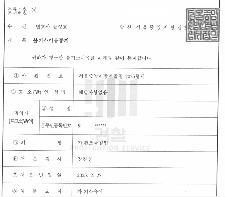 기소유예 처분을 내려주셨습니다.