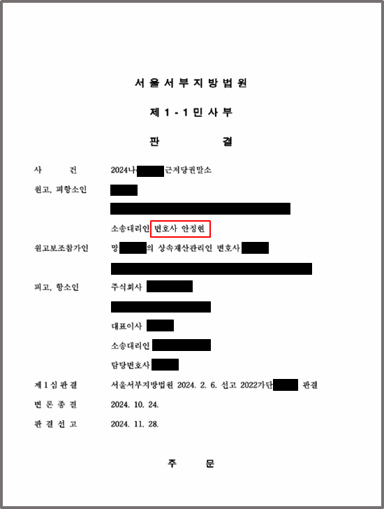 매도인 측을 상대로 한 소유권이전등기청구소송이 상속인들의 계속된 상속포기로 지체되는 일로 인해 본 사건에서는 1심 소송 중에는 근저당권이전을 구하는 내용으로 하여 판결을 받았고, 근저당권자의 항소로 2심 소송이 진행되던 중에 의뢰인이 소유권이전등기를 마치게 되어 근저당권의 말소를 구하는 내용으로 청구취지를 변경하였고, 다시 모두 승소하는 판결을 받게 되었습니다.