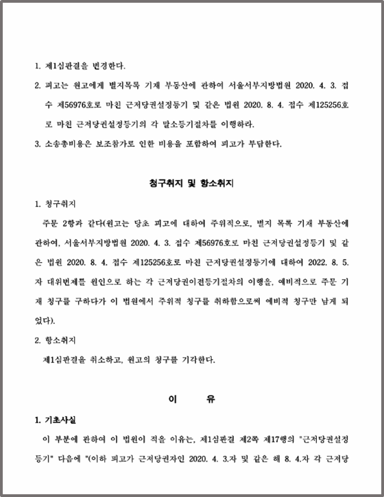 라. 전부승소 – 1심 근저당권이전 판결, 2심 근저당권말소 판결
