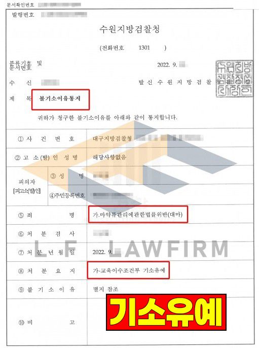 어떻게 하여 마약을 입수하게 되었는지 그 경위에 대해 확인한 후 경찰조사에 임하게 되었고 조사 과정에서 특정되지 않은 범죄사실에 대해서는 축소 조사를 받을 수 있도록 하였습니다. 이후 정상자료를 안내하고 정상자료 준비를 하는 동시에 변호인의견서를 작성하여 담당 검사를 면담하며 최종 교육이수조건부 기소유예 처분을 받을 수 있었습니다.