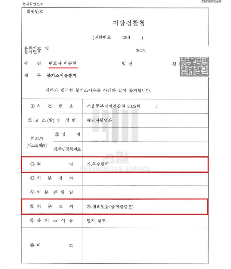 불기소이유 통지서