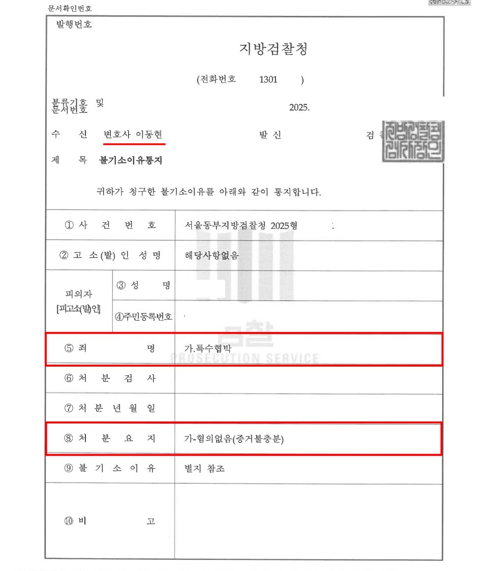 그로부터 며칠 뒤, A씨는 수사기관으로부터 "특수협박 혐의로 조사를 받으러 나오라"는 연락을 받게 되었습니다.