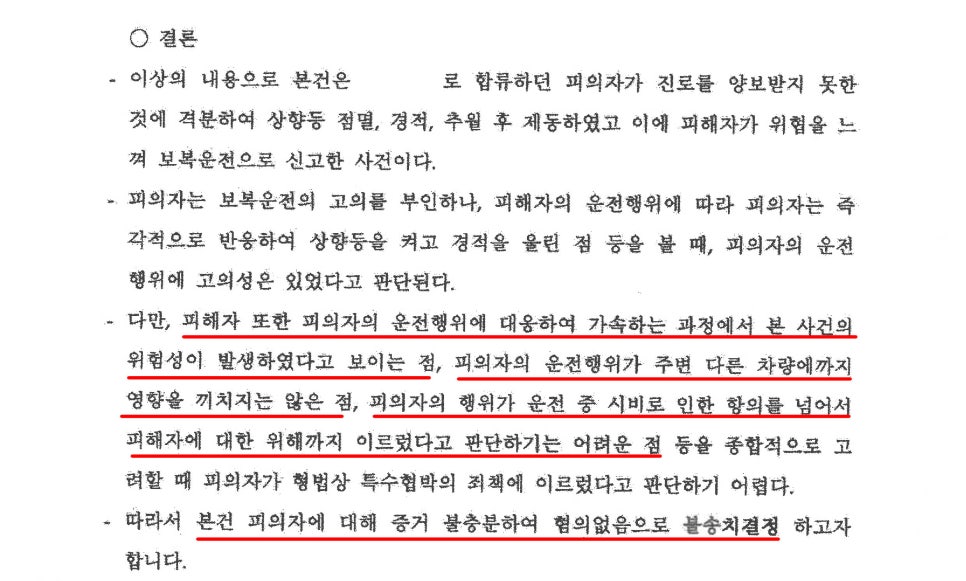 이번 포스팅에서는 제가 직접 진행하여 보복운전 혐의를 받았으나, ‘혐의없음(증거불충분)’ 처분을 받아낸 성공 사례를 설명하겠습니다.