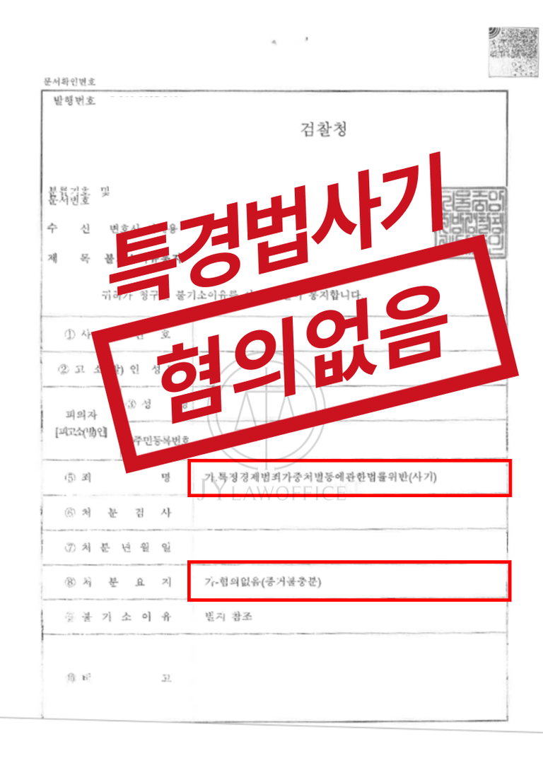 이와 같은 사기전문변호사의 조력으로 의뢰인은 특경법사기 혐의에 대해 혐의 없음의 불기소 처분을 받고 특경법사기 처벌을 피하며 무사히 사건을 종결시킬 수 있었습니다.