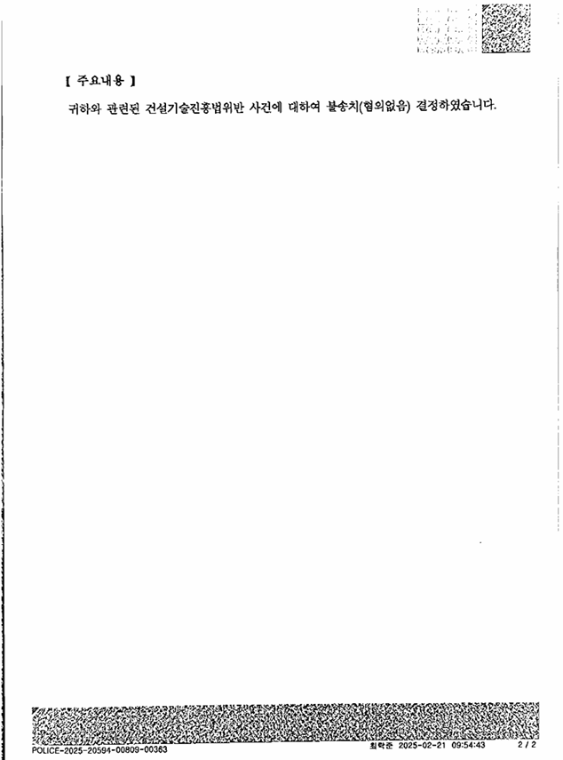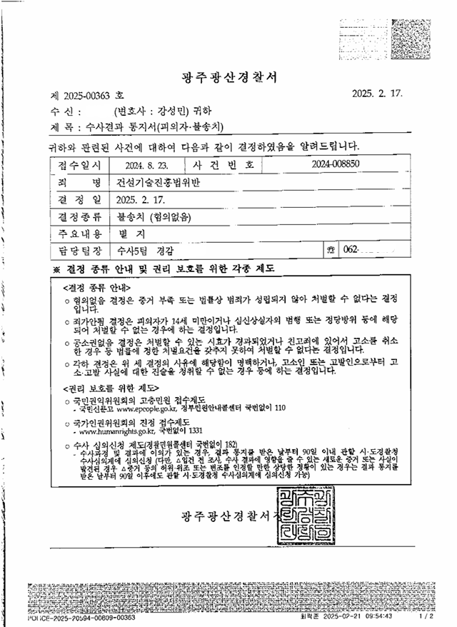 결국 저희측 주장이 받아들여졌고, 경찰에서 불송치(혐의없음) 결정을 하였습니다.