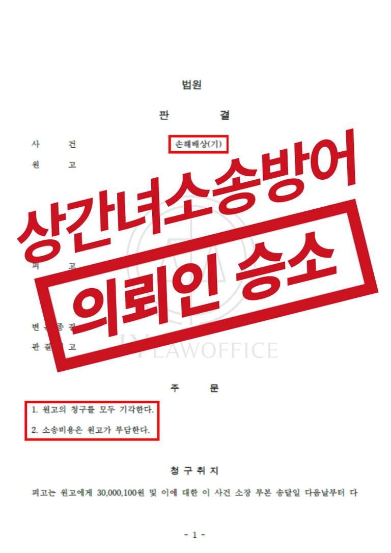 [상간녀소송 전문 변호사 성공사례] 상간녀소송 방어 - 의뢰인 승소, 원고 청구 기각
