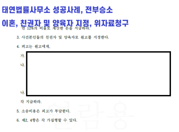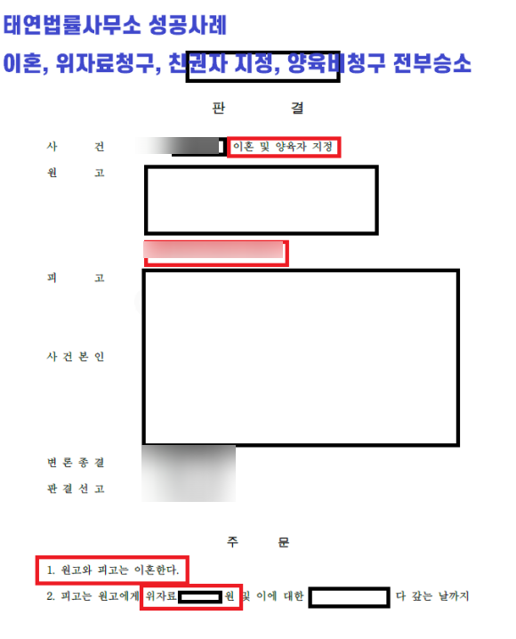 [ 태연법률사무소의 이혼 소송 승소 사례, 이혼 성공 사례 ]