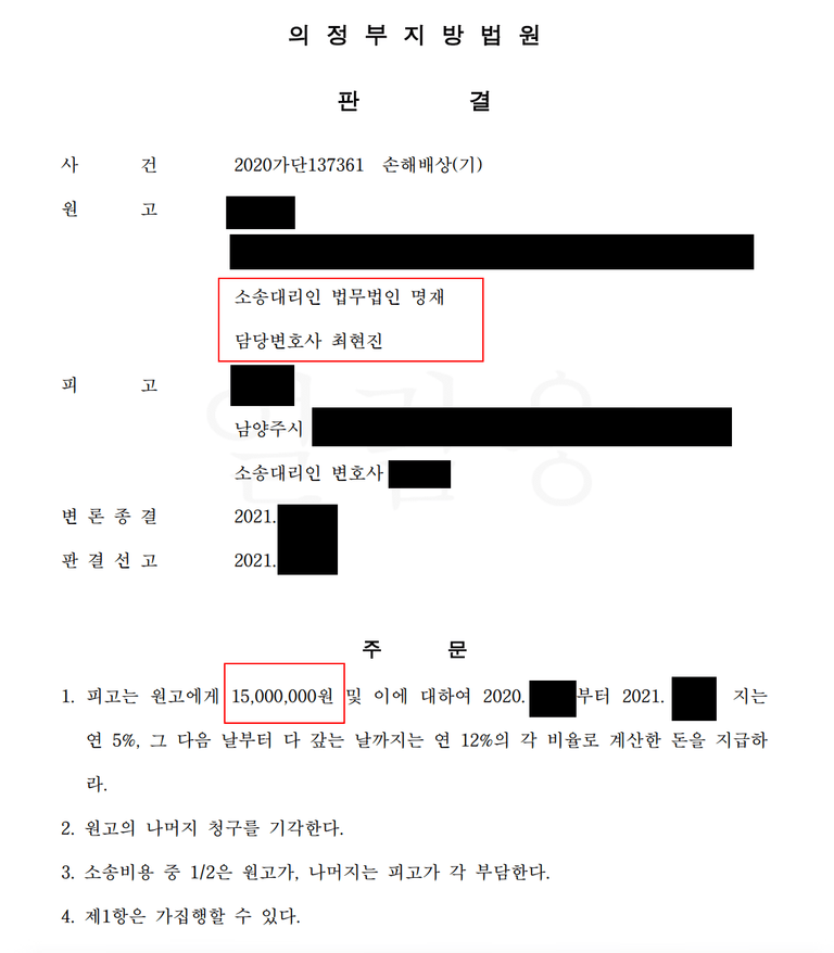 원고 아내와 피고 아내의 소송에서도 똑같은 위자료가 나왔다고 합니다.